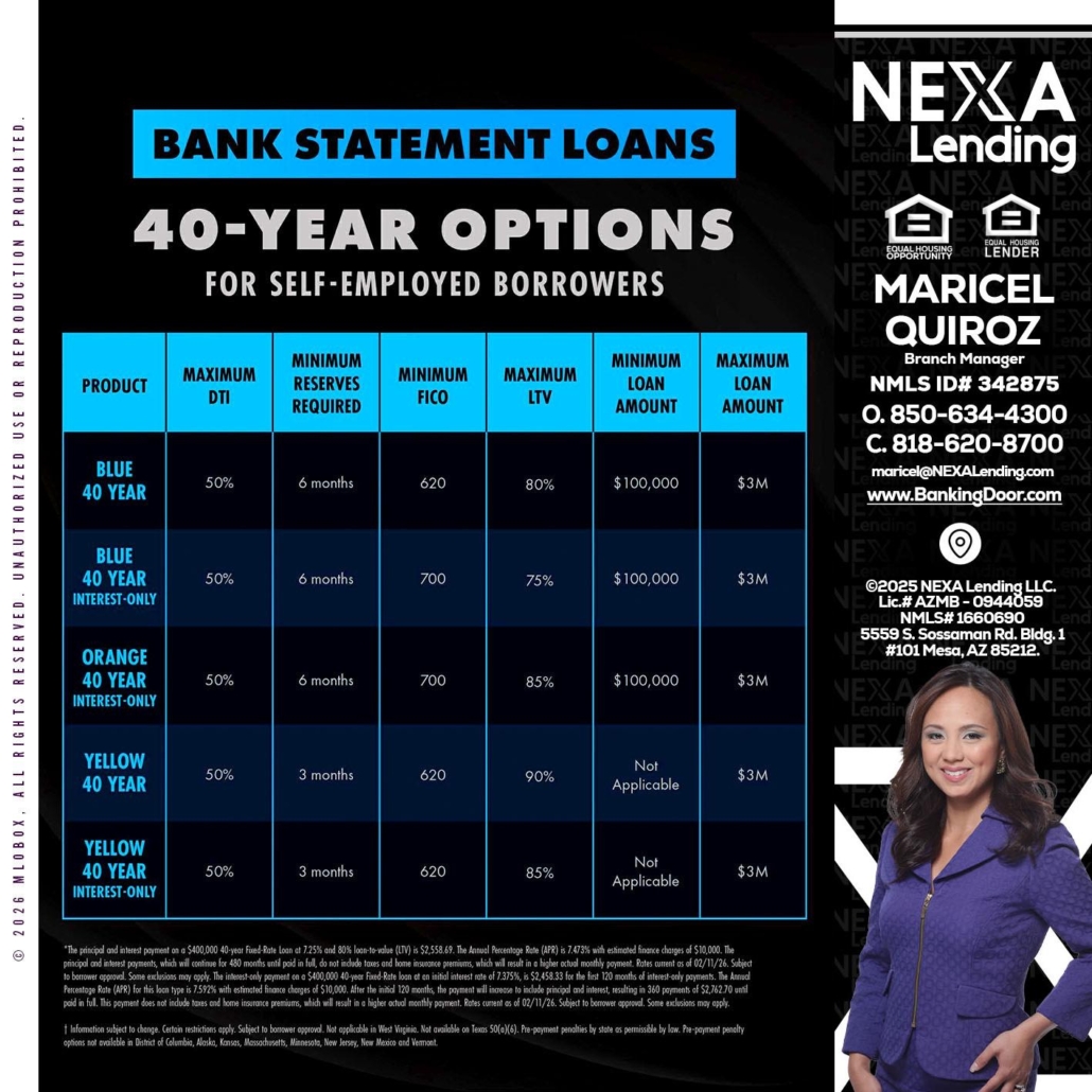 Hi, my name is Maricel Quiroz. I’m a Loan Officer with NEXA Lending LLC., offering personalized mortgage solutions, fast customized quotes, great rates and service with integrity.