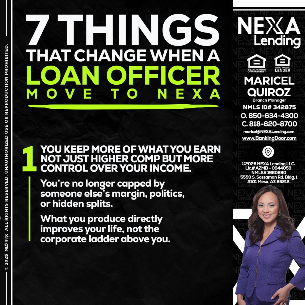 Hi, my name is Maricel Quiroz. I’m a Loan Officer with NEXA Lending LLC., offering personalized mortgage solutions, fast customized quotes, great rates and service with integrity.