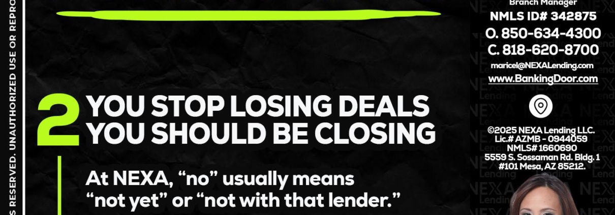 Hi, my name is Maricel Quiroz. I’m a Loan Officer with NEXA Lending LLC., offering personalized mortgage solutions, fast customized quotes, great rates and service with integrity.