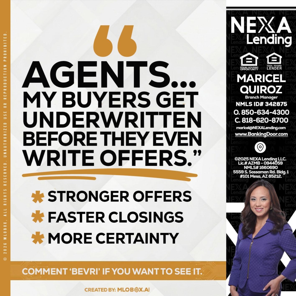 agents - Maricel Quiroz -Branch ManagerHi, my name is Maricel Quiroz. I’m a Loan Officer with NEXA Lending LLC., offering personalized mortgage solutions, fast customized quotes, great rates and service with integrity.