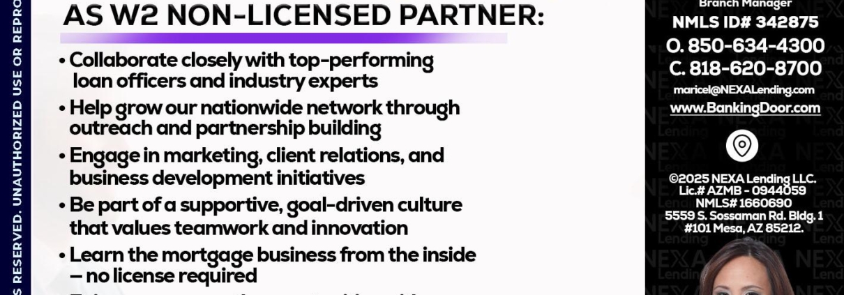 Hi, my name is Maricel Quiroz. I’m a Loan Officer with NEXA Mortgage LLC., offering personalized mortgage solutions, fast customized quotes, great rates and service with integrity.