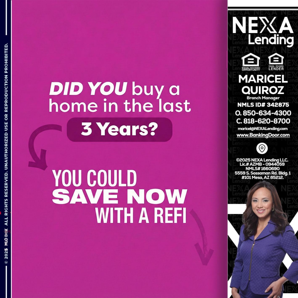 Hi, my name is Maricel Quiroz. I’m a Loan Officer with NEXA Lending LLC., offering personalized mortgage solutions, fast customized quotes, great rates and service with integrity.