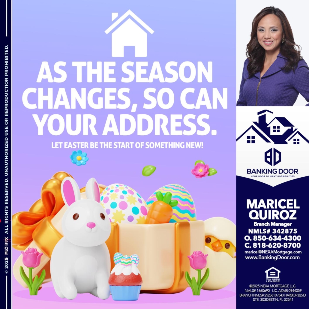 Hi, my name is Maricel Quiroz. I’m a Loan Officer with NEXA Mortgage LLC., offering personalized mortgage solutions, fast customized quotes, great rates and service with integrity.