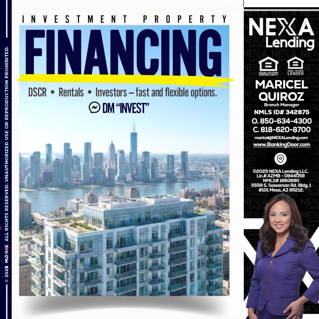 Hi, my name is Maricel Quiroz. I’m a Loan Officer with NEXA Lending LLC., offering personalized mortgage solutions, fast customized quotes, great rates and service with integrity.