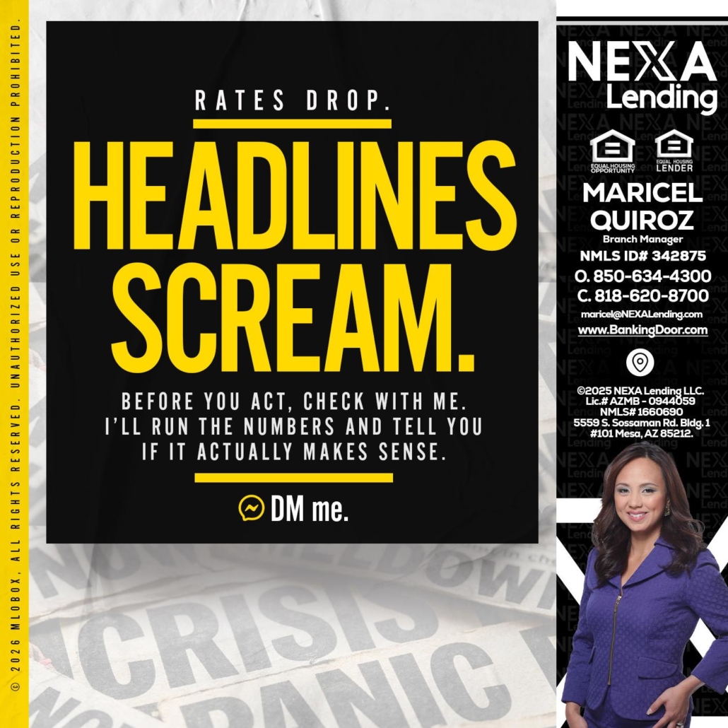 Hi, my name is Maricel Quiroz. I’m a Loan Officer with NEXA Lending LLC., offering personalized mortgage solutions, fast customized quotes, great rates and service with integrity.