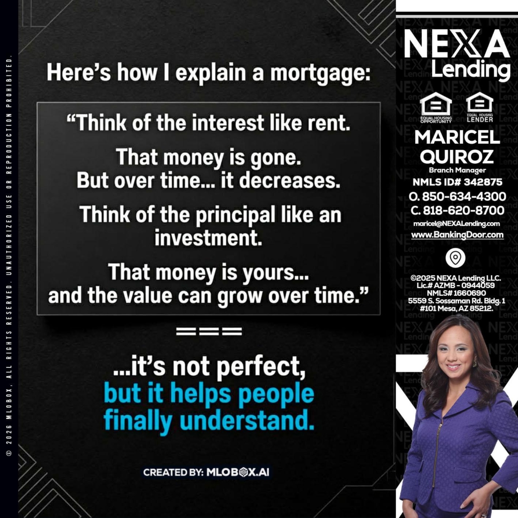 HERES NOW - Maricel Quiroz -Branch ManagerHi, my name is Maricel Quiroz. I’m a Loan Officer with NEXA Lending LLC., offering personalized mortgage solutions, fast customized quotes, great rates and service with integrity.