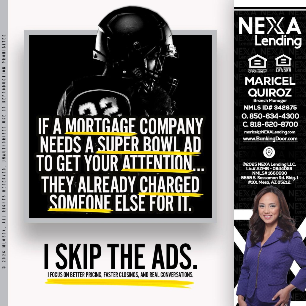 if a mortgage ad - Maricel Quiroz -Branch ManagerHi, my name is Maricel Quiroz. I’m a Loan Officer with NEXA Lending LLC., offering personalized mortgage solutions, fast customized quotes, great rates and service with integrity.