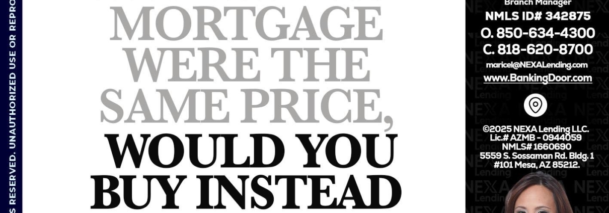 IF RENT - Maricel Quiroz -Branch ManagerHi, my name is Maricel Quiroz. I’m a Loan Officer with NEXA Mortgage LLC., offering personalized mortgage solutions, fast customized quotes, great rates and service with integrity.