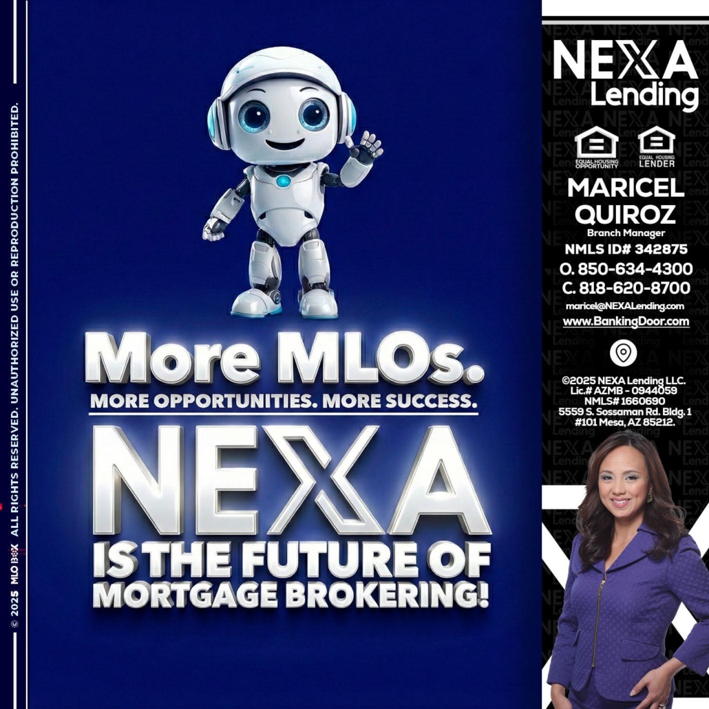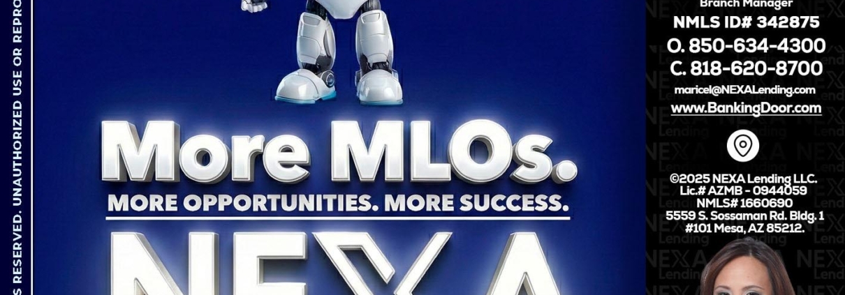 Hi, my name is Maricel Quiroz. I’m a Loan Officer with NEXA Lending LLC., offering personalized mortgage solutions, fast customized quotes, great rates and service with integrity.