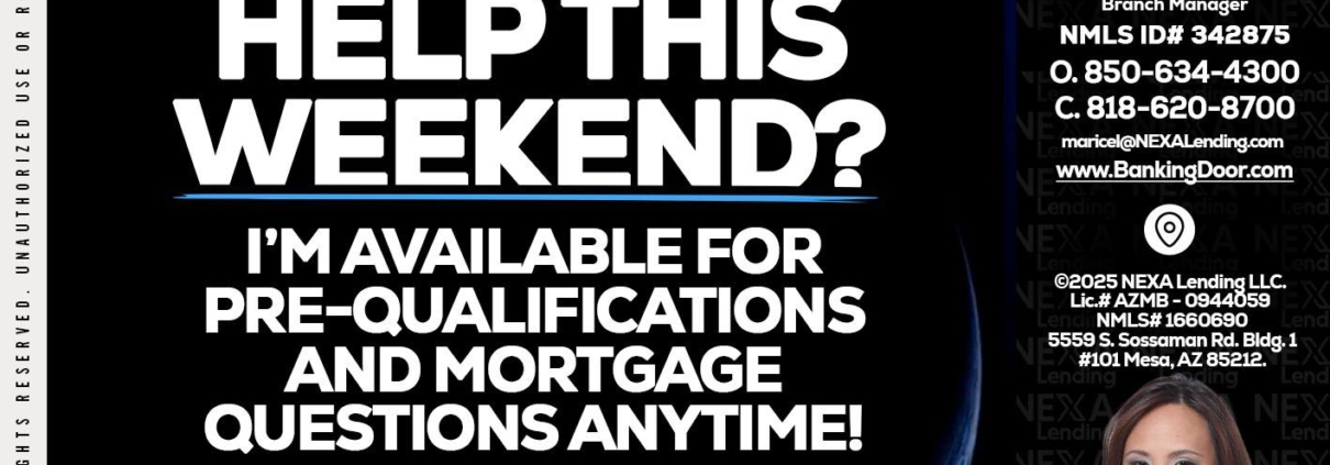 Hi, my name is Maricel Quiroz. I’m a Loan Officer with NEXA Lending LLC., offering personalized mortgage solutions, fast customized quotes, great rates and service with integrity.