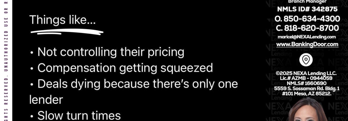 Hi, my name is Maricel Quiroz. I’m a Loan Officer with NEXA Lending LLC., offering personalized mortgage solutions, fast customized quotes, great rates and service with integrity.