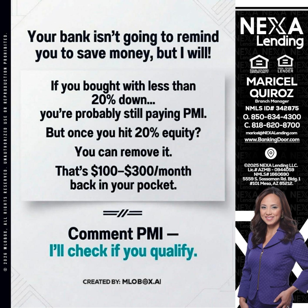 Hi, my name is Maricel Quiroz. I’m a Loan Officer with NEXA Lending LLC., offering personalized mortgage solutions, fast customized quotes, great rates and service with integrity.